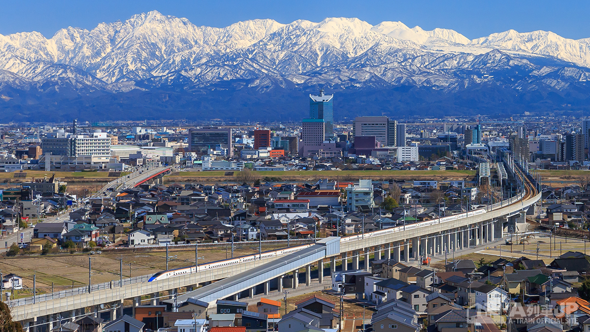 そしてあいの風とやま鉄道では、沿線の各所から、標高3000m級の立山連峰を眺めることが可能です。