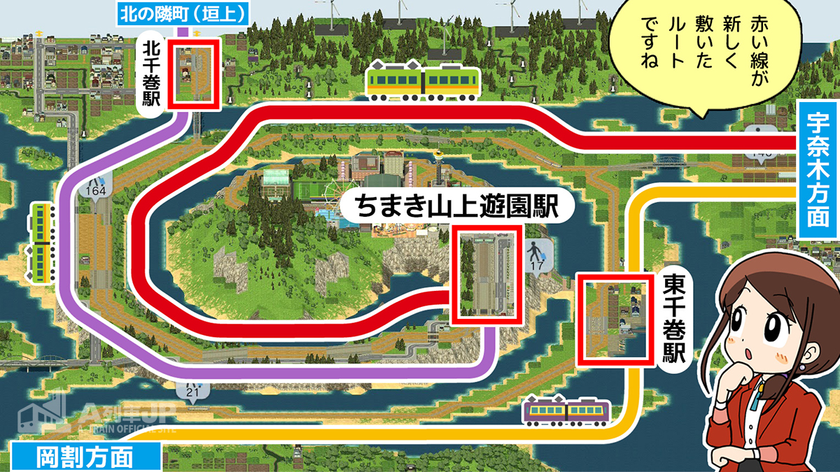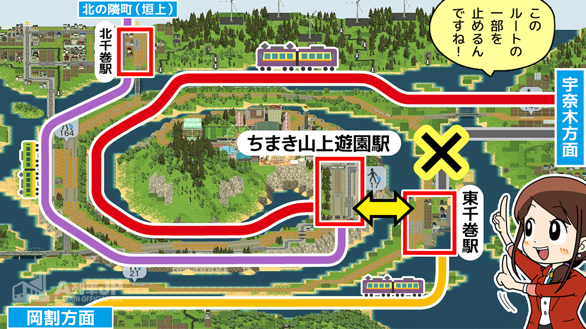 それでは、ちまき山上遊園駅へお客さんを呼び込むルートを作っていきましょう。