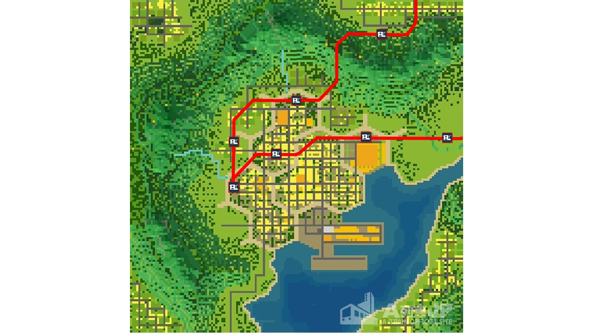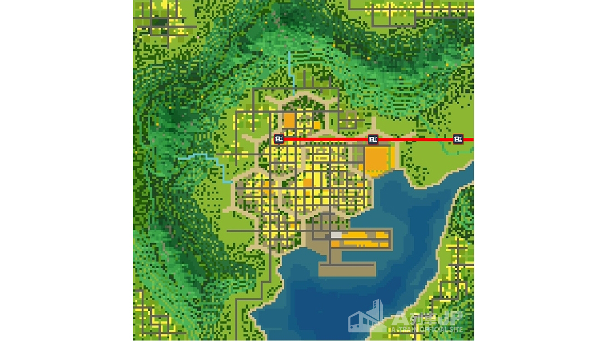 それぞれの路線は、美頼地区のターミナル駅で接続する。狙いは、北の隣町から来た観光客をターミナル駅で乗り換えさせて、美頼地区の発展を促すことだ。さらに美頼地区内には駅を多めに設置した。発展スピードを早め、人口目標を達成するためだ。