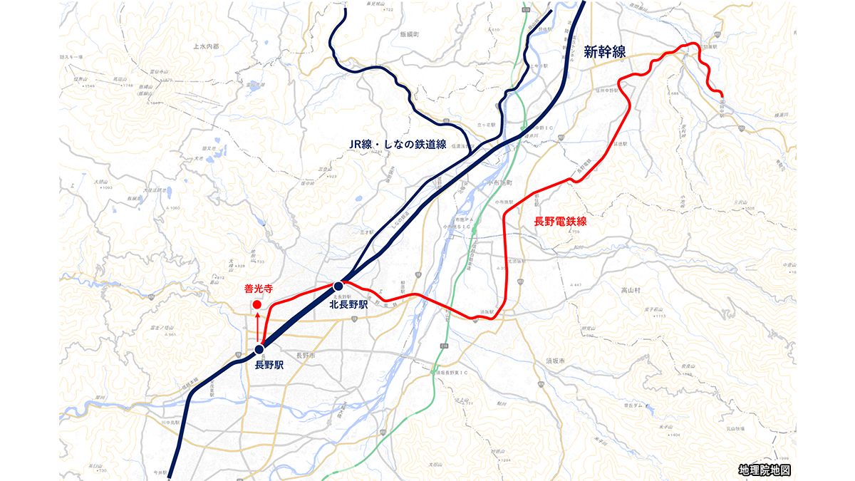 ところが長野にはもうひとつの軸があります。長野駅前から善光寺までの中央通り(旧北国街道)、それと並行する長野大通りの長野電鉄地下区間です。新幹線を南北にすると、道路が斜めになってしまい、成立しないのです。