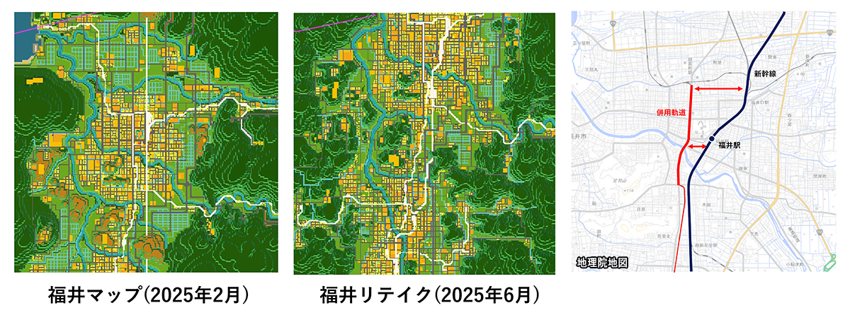 北陸新幹線の開業を記念した企画だったため新幹線を削る選択肢はありませんでしたが、新幹線開業前のJR北陸本線(現・ふくいハピライン)を再現したらどうなるだろうかと試してみたのが福井リテイクマップです。